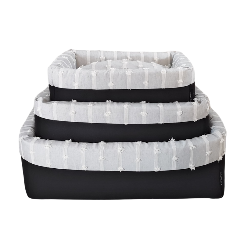 Il cuscino è sfoderabile, il suo interno è in ovatta resinata e sfioccata in fibra di poliestere e ricoperta da una fodera in tessuto poliestere resistente.