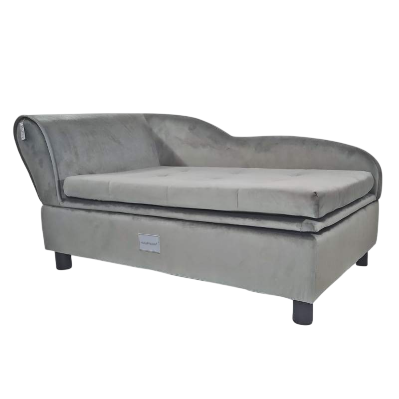 Divanetto contenitore con pistoni per il sollevamento, cuscino rimuovibile fissato alla struttura con velcro
