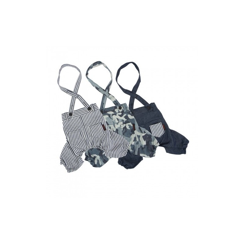Simpatici pantaloni con bretelle in cotone 100% nei colori Blu Scuro e Blu Scuro a righe e cotone 60%, poly 37%, span 3%, nei colori Blu Scuro Camouflage.