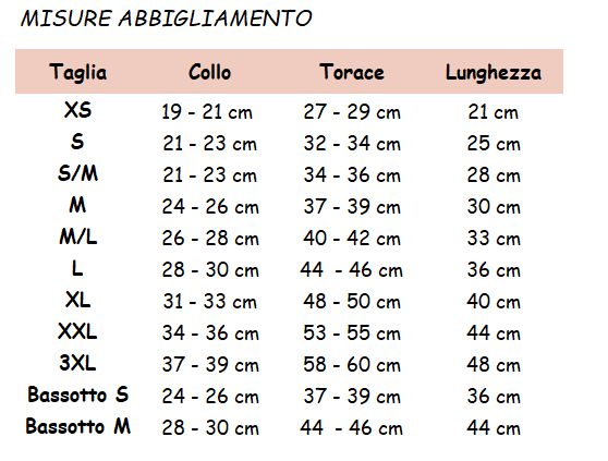 Per una scelta corretta della taglia si consiglia di verificare le misure di collo, torace e dorso consultando la tabella taglie disponibile nella scheda prodotto.
