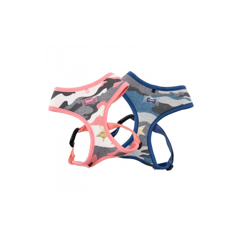 Pettorina modello A sicura e alla moda, con motivo camouflage, cintura toracica regolabile e con targhetta SMART.