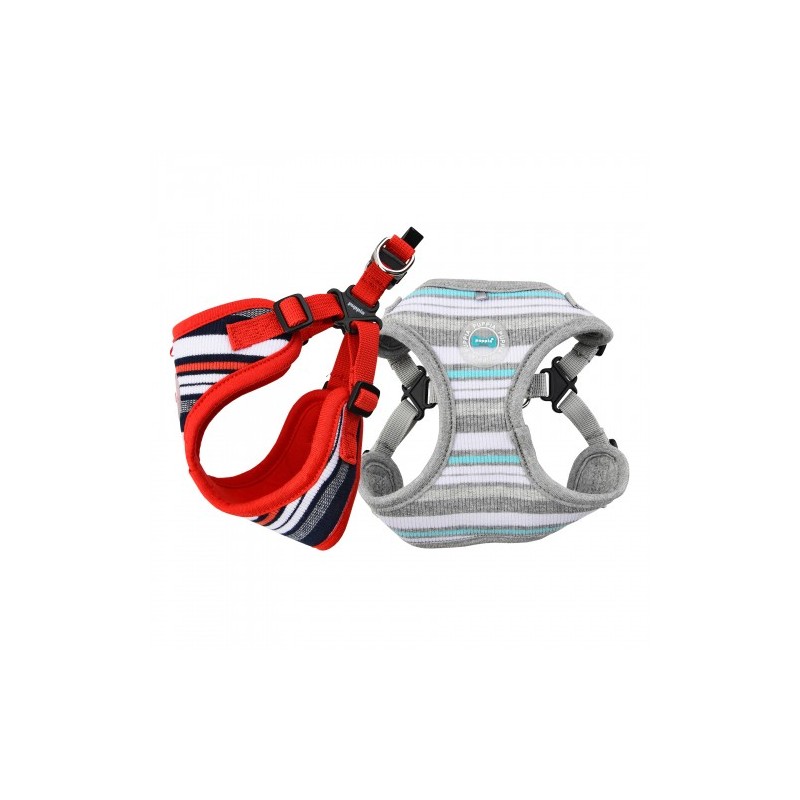 Pettorina modello A sicura e alla moda, con motivo a righe, cintura toracica e collo regolabili e targhetta SMART.