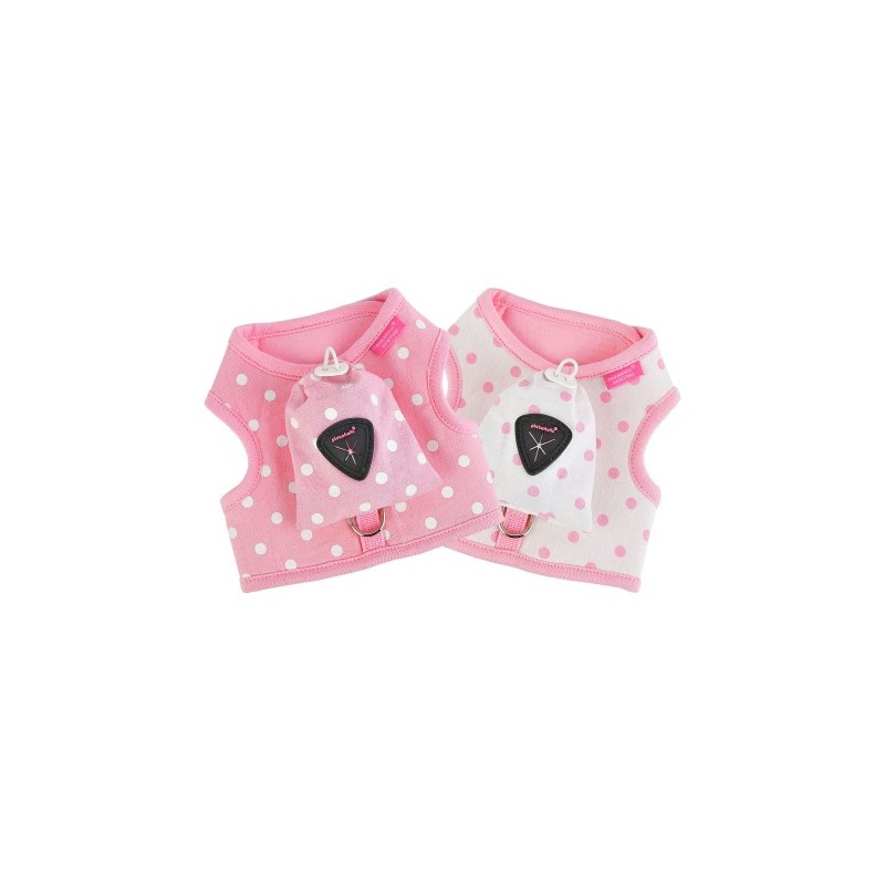 Pettorina modello J sicura e alla moda, con motivo a pois e pizzo, cintura toracica regolabile. Esterno: LINO 55% COTONE 45% - Interno cotone 100%