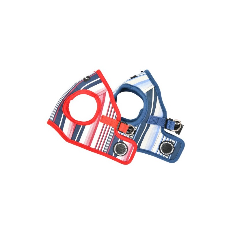 Pettorina modello B sicura e alla moda con motivo a righe, cintura toracica regolabile e con targhetta SMART.