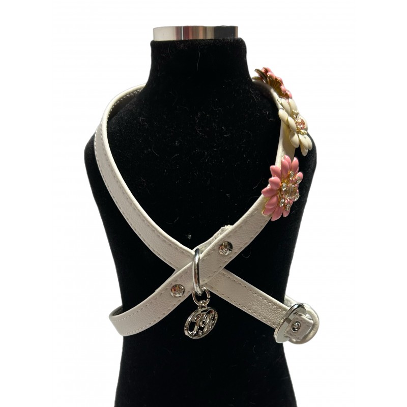 Pettorina in ecopelle scorrevole con applicazione fiori