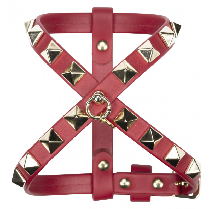 Pettorina in morbida ecopelle, decorata con rivetti a forma di piramide.