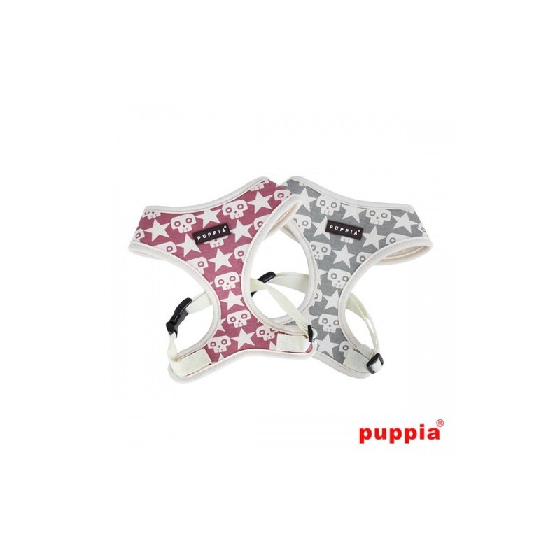 Pettorina realizzata in 100% cotone naturale (esterno e fodera), ha una bella fantasia a teschietti e stelle ed etichetta in gomma Puppia.