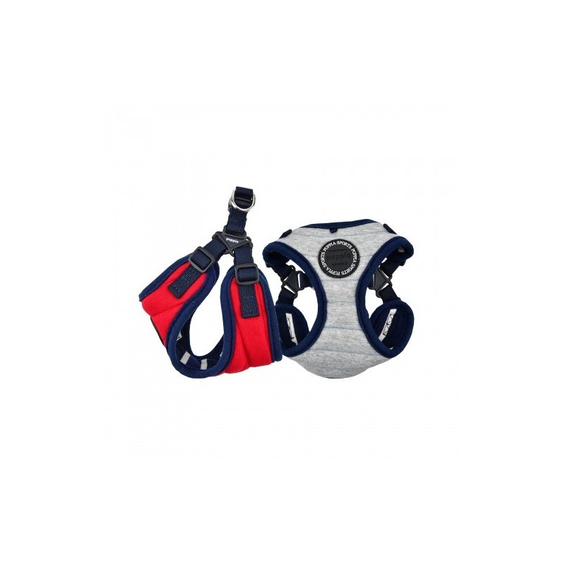 Pettorina modello C sicura e alla moda , motivo a strisce e trapuntato, con collo e petto regolabili con fibbia. Targhetta SMART.