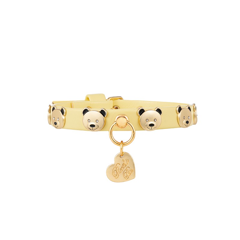 Teddy Studs Collar Yellow Ecoleather/Gold