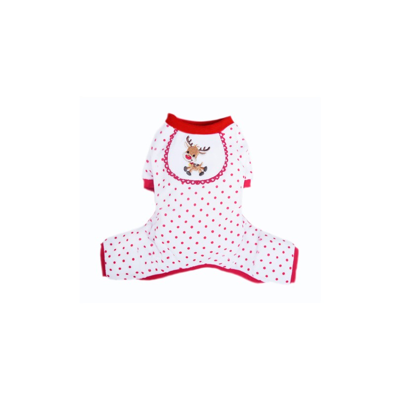 Tenerissima tutina pigiamino rosso con un delizioso ricamo con giraffa ed è realizzato in 80% cotone, 20% poliestere. Terrà il vostro cane al caldo durante la notte!