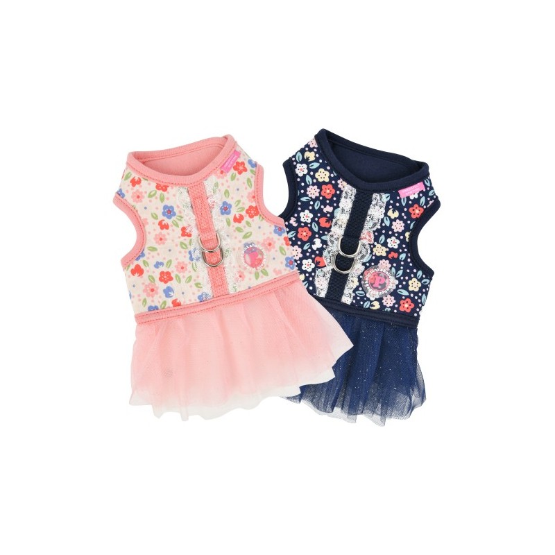 Pettorina modello D sicura e alla moda, con motivo floreale, torace e collo regolabili ed etichetta Pinkaholic