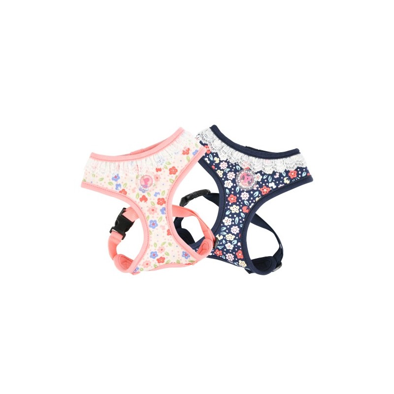 Pettorina modello A sicura e alla moda, con motivo floreale, cintura toracica regolabile ed etichetta Pinkaholic