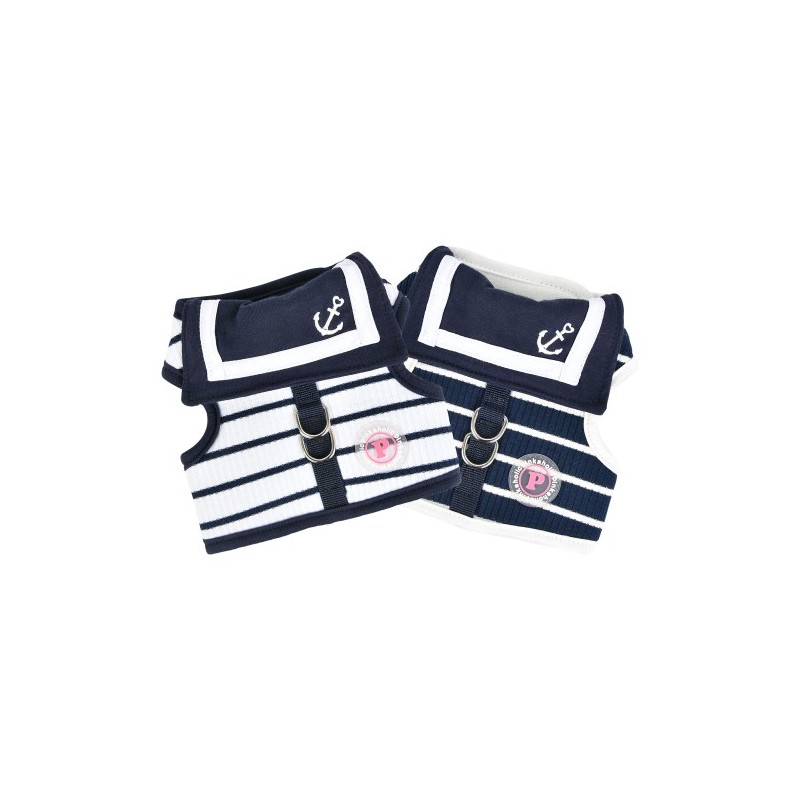 Pettorina modello J sicura e alla moda, con motivo a righe, torace e collo regolabili ed etichetta Pinkaholic