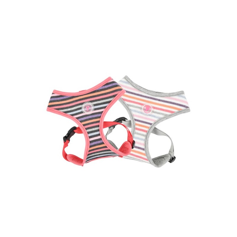 Pettorina modello A sicura e alla moda, con motivo a righe, cintura toracica regolabile ed etichetta Pinkaholic