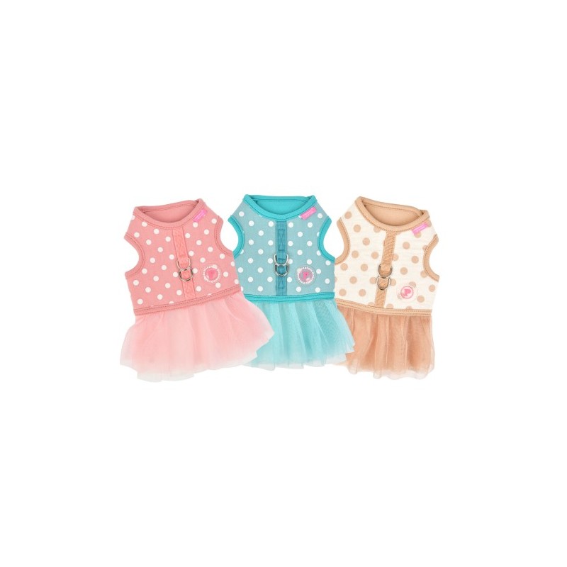 Pettorina modello D sicura e alla moda, con motivo a pois, torace e collo regolabili ed etichetta Pinkaholic