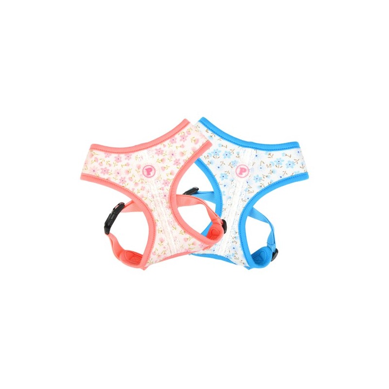 Pettorina modello A sicura e alla moda, con motivo floreale e etichetta Pinkaholic, cintura toracica regolabile