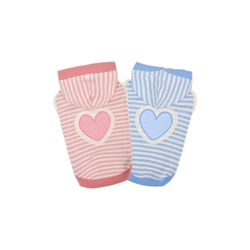 Felpa con cappuccio, Motivo a righe e tinta unita, Decorata con ricamo a cuore e balze