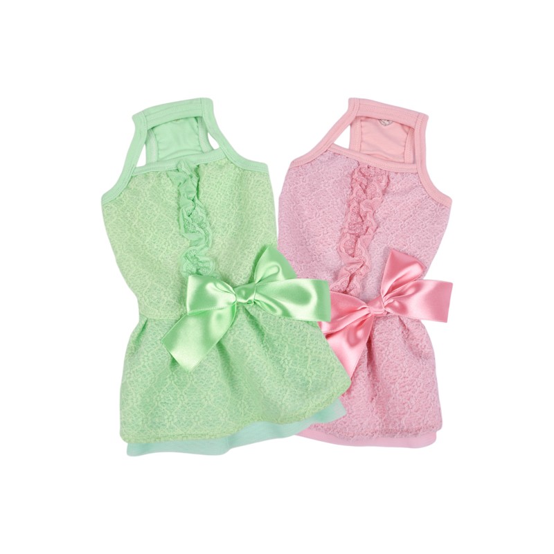 Abito intero, motivo pizzo jacquard e tinta unita, decorato con pizzo e fiocco sul dorso