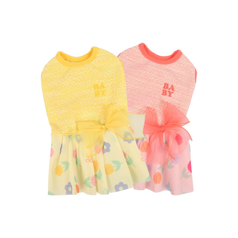 Abito con gonnellina floreale, decorato da fiocco