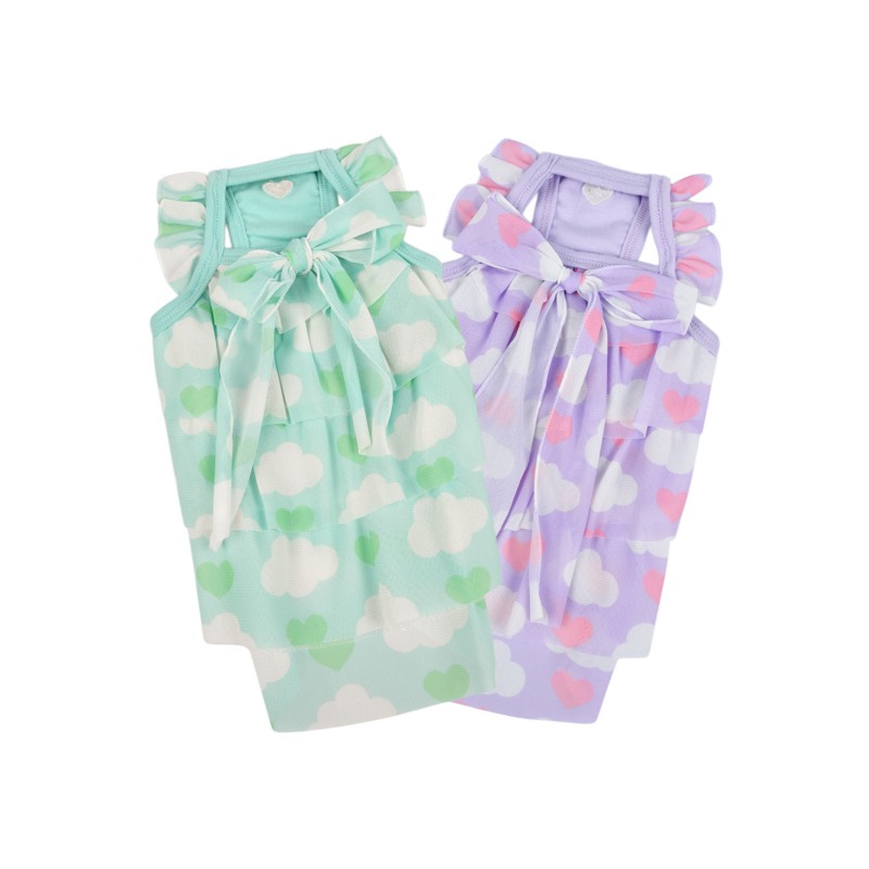 Abito intero, motivo a nuvole e tinta unita, decorato con fiocco sul collo