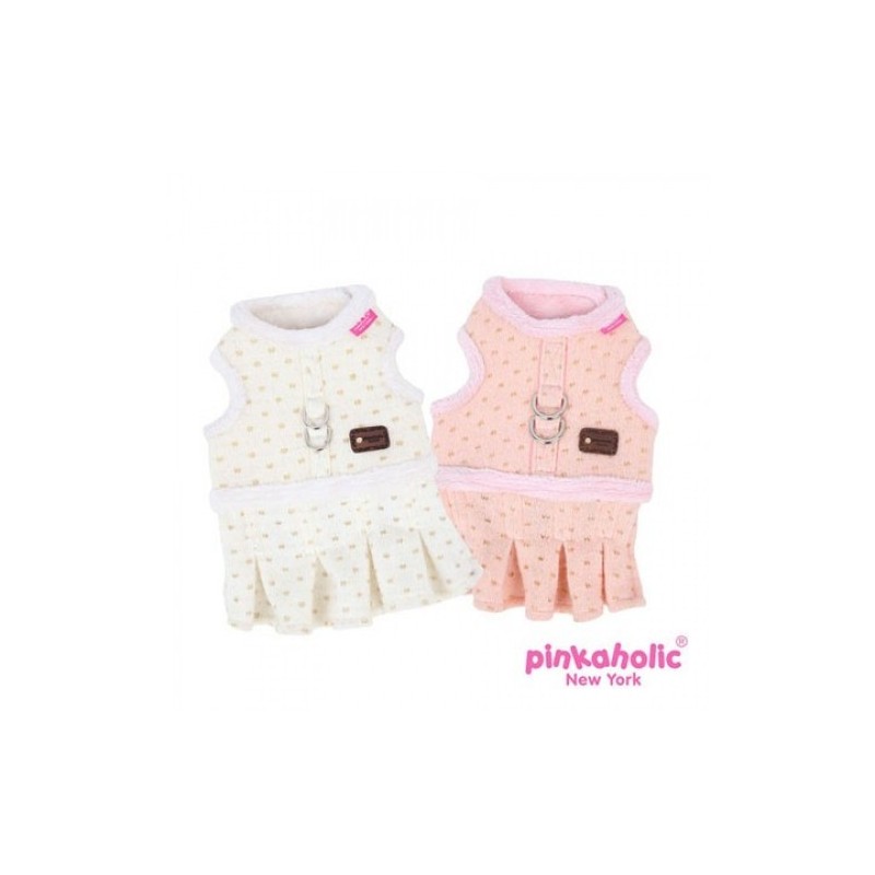 Bellissima ed elegante pettorina-vestitino a pois. Con morbida gonna in tessuto di pile. Calda e confortevole per i giorni invernali.