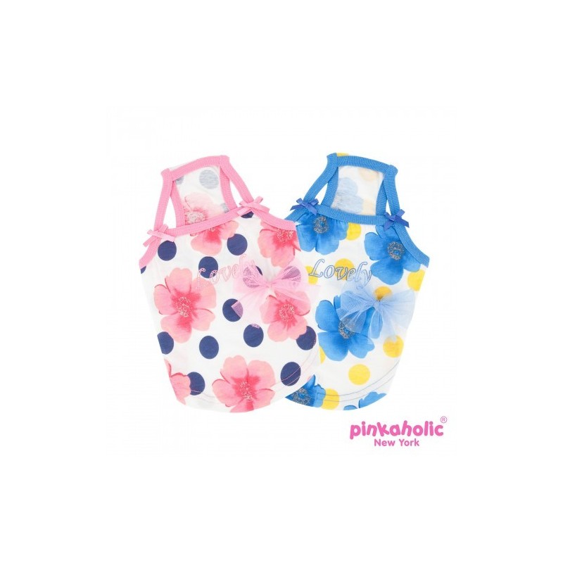 Canotta con motivo floreale e tinta unita, decorata con strass sulla parte posteriore.