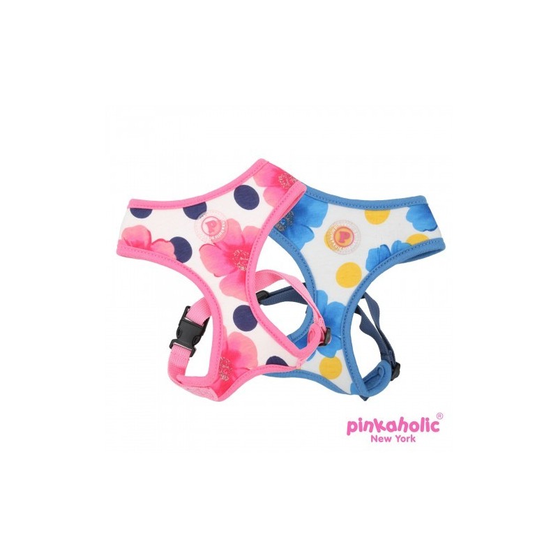 Bellissima e sicura pettorina Pinkaholic con motivo floreale e tinta unita. Etichetta in gomma Pinkaholic.
