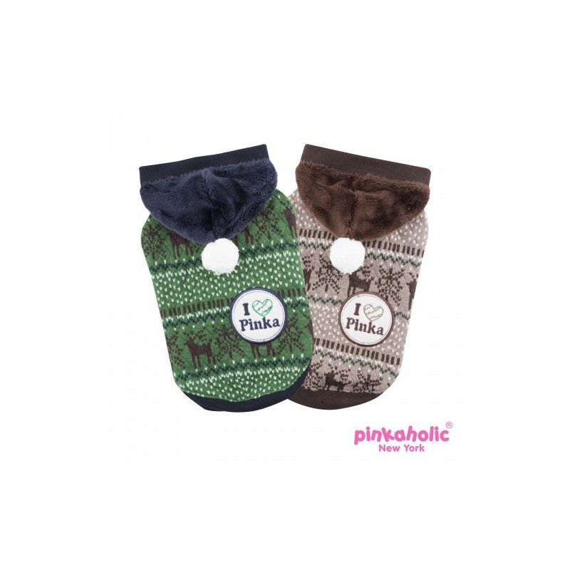 Bella maglia con motivo a renna, decorata con pompon e applique sul dorso.