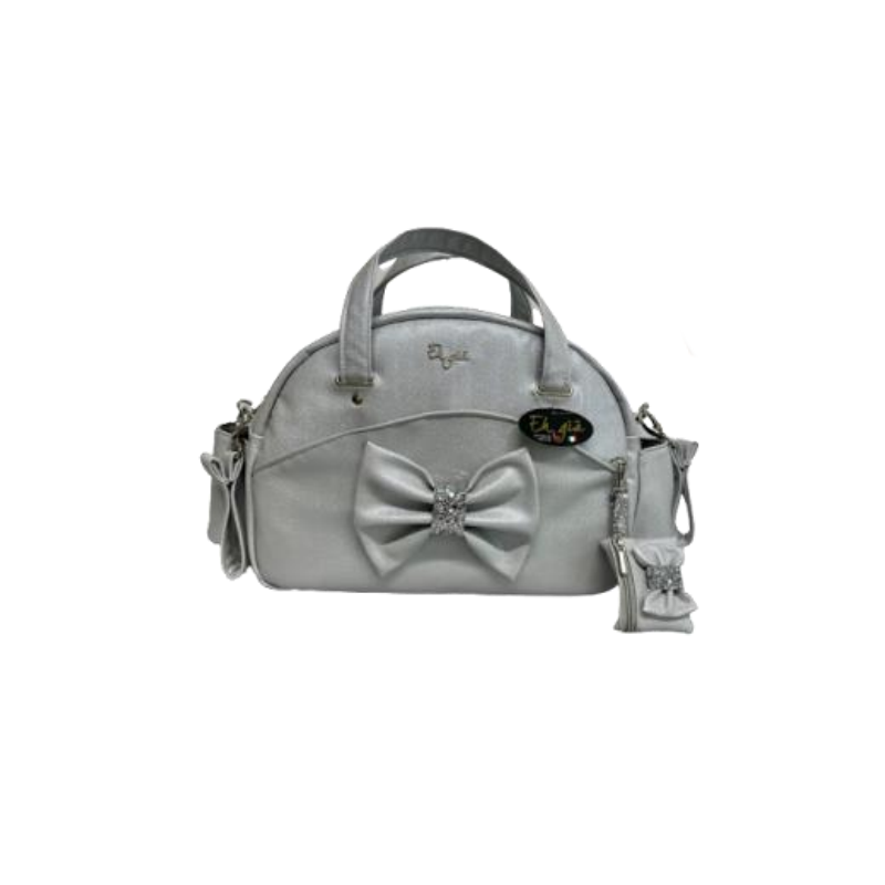 Borsa Trasportino da appendere al passeggino dotata di tasca esterna porta oggetti con bottone, due passavanti laterali, tracolla, due vani separati all'interno, ganci da agganciare al passeggino
