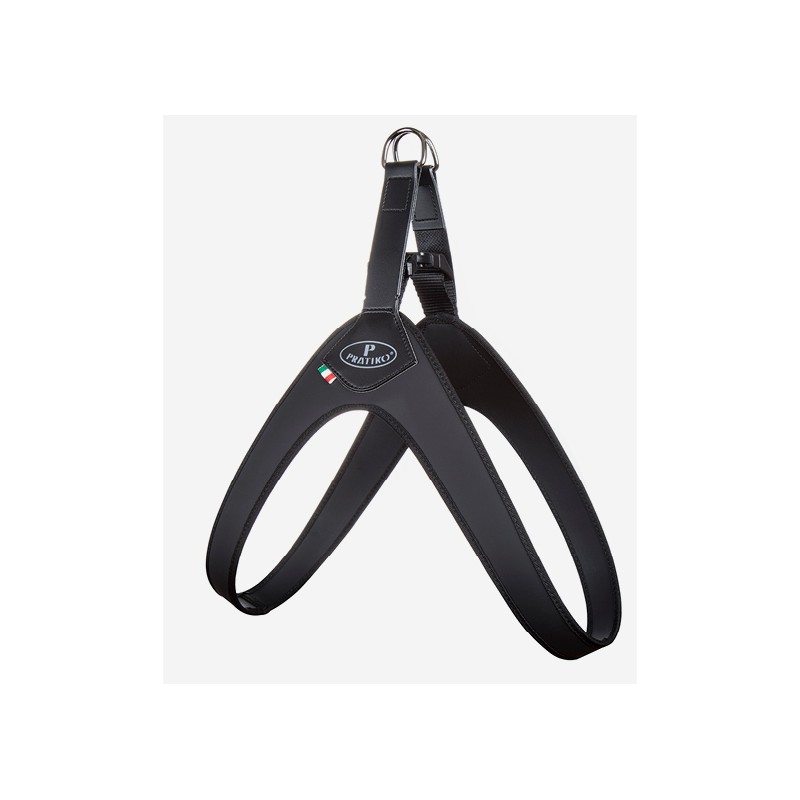 La pettorina è studiata per una corretta distribuzione delle forze in trazione sul petto del cane senza recare fastidio alcuno al collo. Disegnata e realizzata a mano in Italia, con tecniche artigianali e materie prime di altissima qualità di origine italiana certificata.