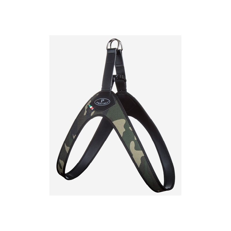 La pettorina è studiata per una corretta distribuzione delle forze in trazione sul petto del cane senza recare fastidio alcuno al collo. Disegnata e realizzata a mano in Italia, con tecniche artigianali e materie prime di altissima qualità di origine italiana certificata.