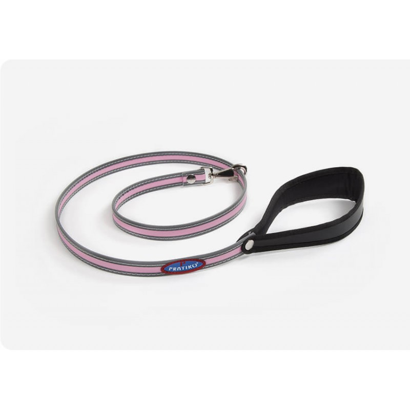 Il guinzaglio bordato con fettuccia è dotato di una morbida impugnatura in neoprene nero, materiale idrorepellente ed estremamente elastico e resistente. E’l’ideale per rispondere alle esigenze di praticità, sia del 4 zampe, sia di chi lo conduce. Il guinzaglio è abbinabile con tutte le tipologie di pettorine della linea Pratiko. E ‘destinato principalmente aio cani di piccola e media taglia. La lunghezza dell’accessorio è di 115 cm. Il guinzaglio è realizzato in Italia con materiali di origine italiana certificata.