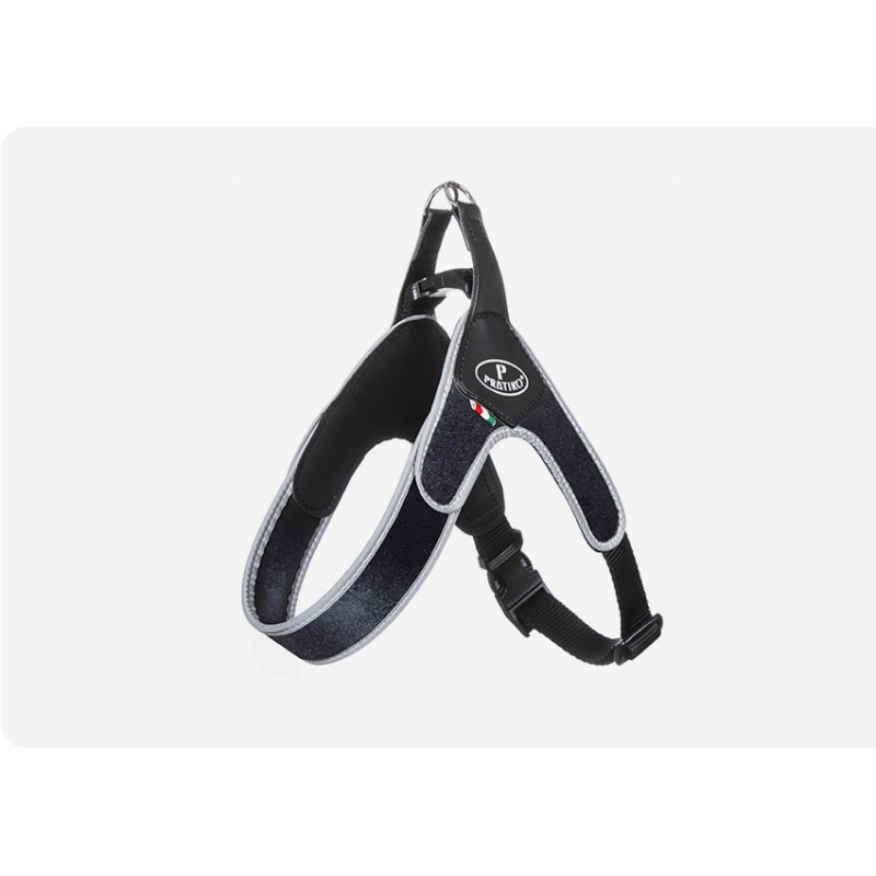 Regolabile grazie alla fibbia ed alla chiusura a scatto su schiena e sottopancia realizzata in poliestere, è ideale per l’utilizzo quotidiano, anche in caso di pioggia. Leggera, confortevole, ergonomica e dinamica: avvolge stabilmente l’amico a quattro zampe, consentendo di averne il pieno controllo e riducendo la trazione sul collo del cane. La bordatura rifrangente aumenta in modo sensibile la visibilità dell’amico a 4 zampe durante le passeggiate prima dell’alba e dopo il tramonto. Disegnata e realizzata a mano in Italia, con tecniche artigianali e materie prime di altissima qualità di origine italiana certificata.
