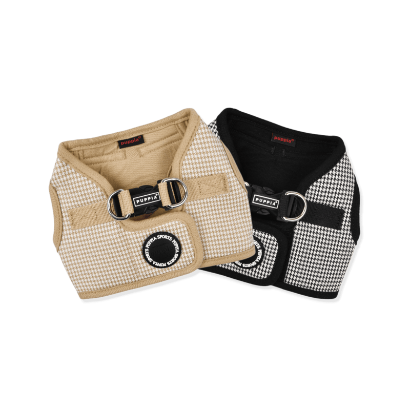 Pettorina modello B sicura e alla moda, anello a D anteriore per evitare che il cane tiri, motivo pied de poul e tinta unita, Fibbia e chiusura a strappo