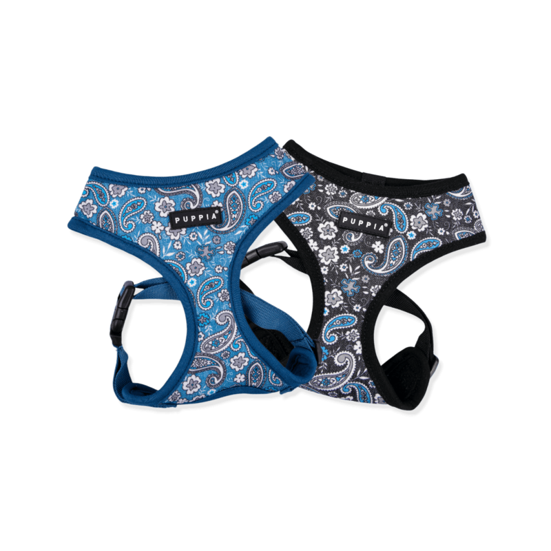 Pettorina modello A sicura e alla moda, motivo paisley e tinta unita, cintura pettorale regolabile con fibbia.