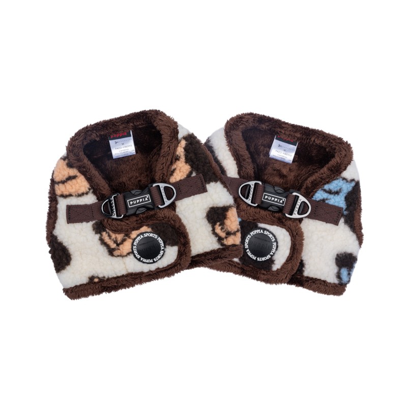 Pettorina sicura e alla moda invernale a sgancio rapido, modello B, motivo a cagnolini e tinta unita, chiusura con fibbia e velcro