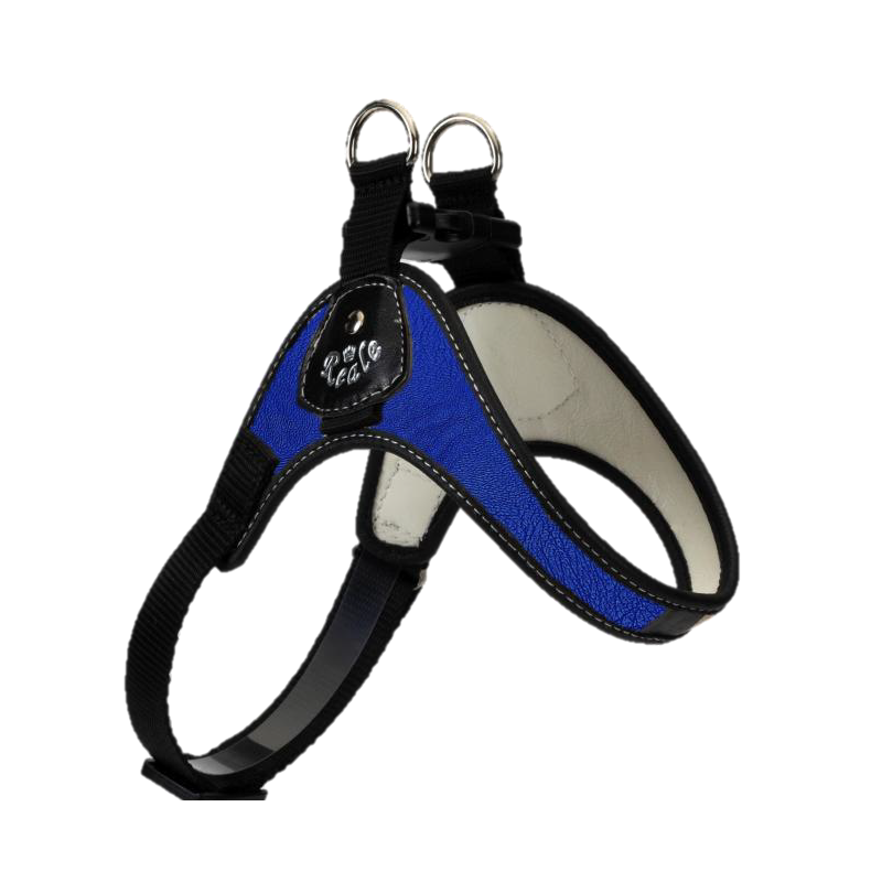 Pettorina realizzata in pelle sintetica con bordino laterale antirritazione; con chiusura sopra il dorso mediamte fibbie a scatto mentre la regolazione è sottopancia!