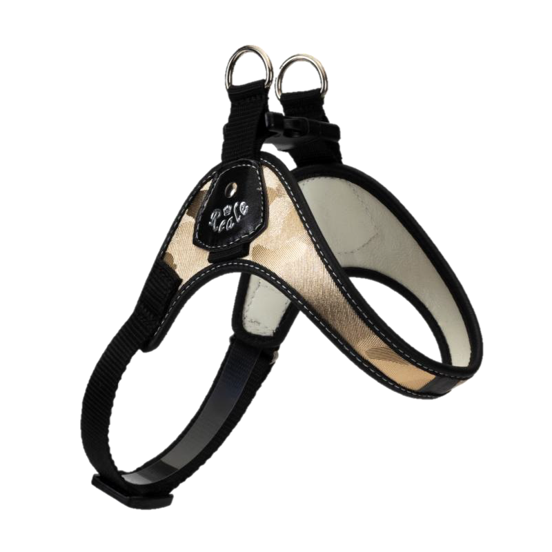 Pettorina realizzata in pelle sintetica con bordino laterale antirritazione; con chiusura sopra il dorso mediamte fibbie a scatto mentre la regolazione è sottopancia!