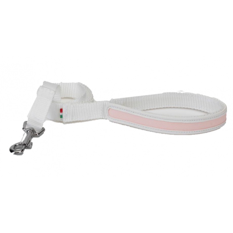 Realizzato in corda nylon nera/bianca antistrappo in lunghezza standard 120cm con moschettone metallico nichel free ad elevata resistenza.