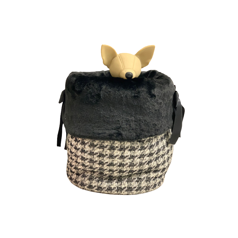 Caldo e soffice sacco nanna in tessuto chanel ed ecopellicia nera interna. Ideale da usare durante le passeggiate in braccio a mamy, restando al calduccio. Perfetto anche come cuccia.