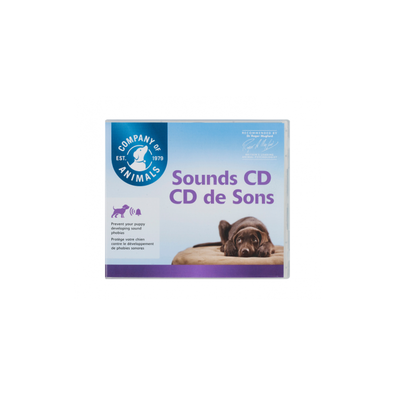 Studiato per essere utilizzato come metodo testato per trattare ed evitare fobie sonore in cuccioli e cani. Progettato dagli esperti di Centro Comportamento Animali, questo CD ha quattro categorie; rumori forti e improvvisi, trasporto, elettrodomestici e persone.