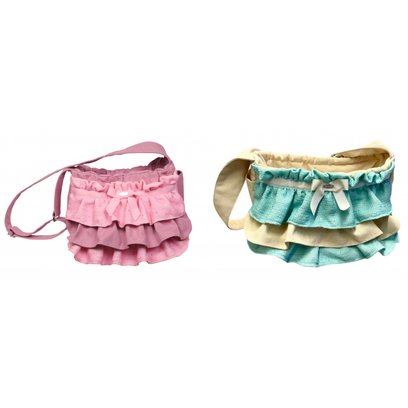Per un tocco di glamour estivo in tela di cotone cerato con volant tessuto multifilamento. La borsa è dotata di guinzaglio di sicurezza, tracolla regolabile, cuscino removibile e tasca esterna. Adatta al trasporto di cani di piccola taglia, fino a un massimo di 2,9 kg.