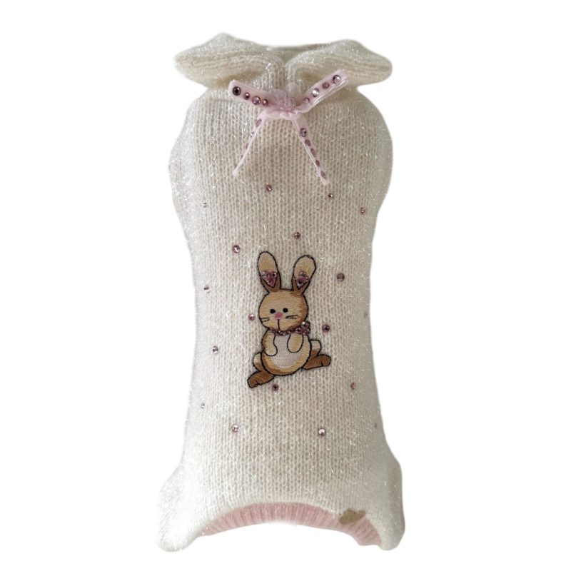 Tutina 4 zampe in lana lurex impreziosita da fiocchetto e coniglietto