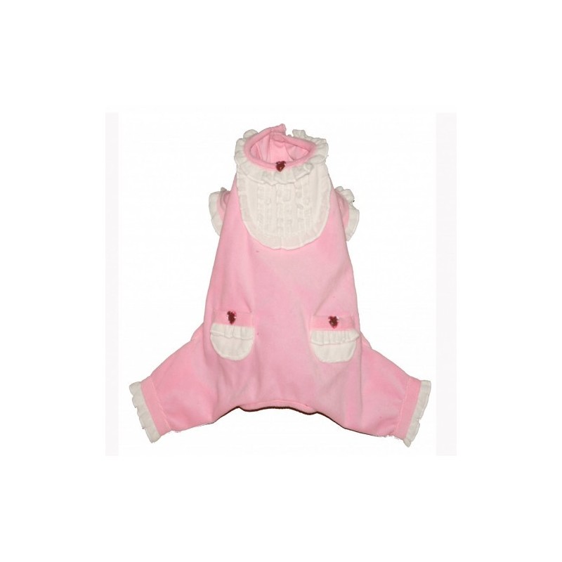 Tuta super morbida in velluto stretch di cotone con chiusura a velcro per essere indossata facilmente con design colorato ricamato a mano.
