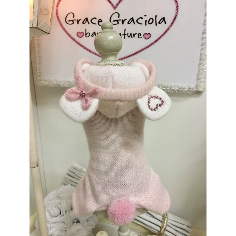 Romantica tutina 4 zampe con cappuccio ed orecchiette... da una parte fiocchetto e dall'altra cuoricino in scintillanti cristalli swarovski.