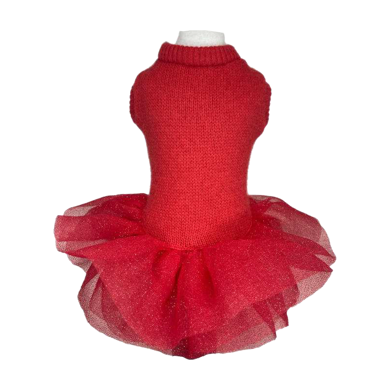 Abito in maglia con gonna a balze in tulle glitterato, grintoso e scintillante