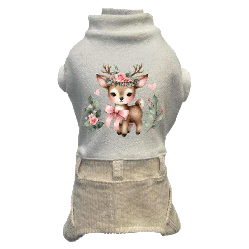 Tutina in ciniglia con stampa bambi e pantalone in velluto