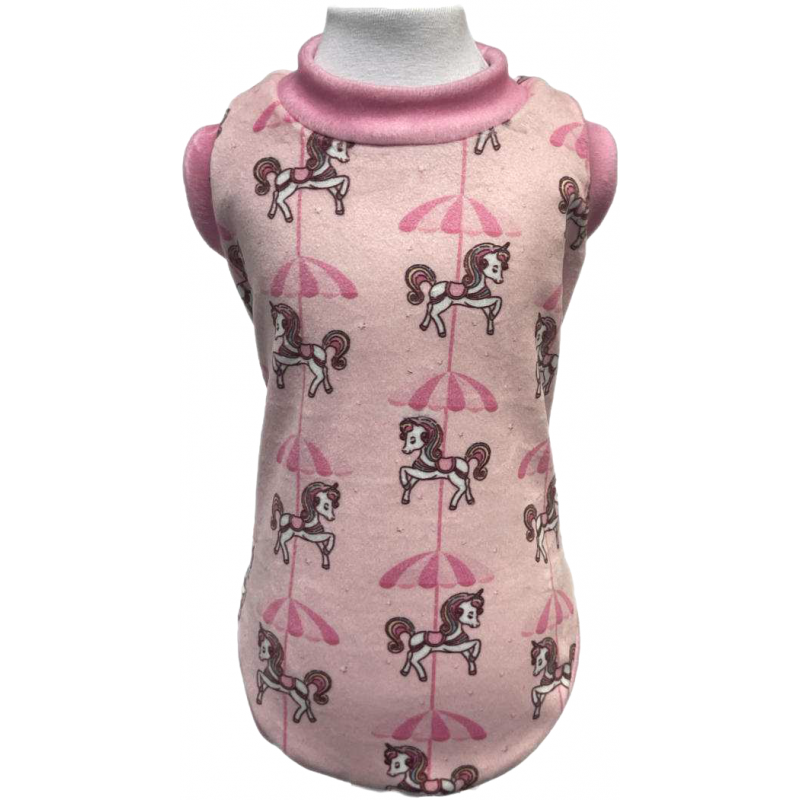 T-shirt in ciniglia rosa con teneri cavallini da carosello