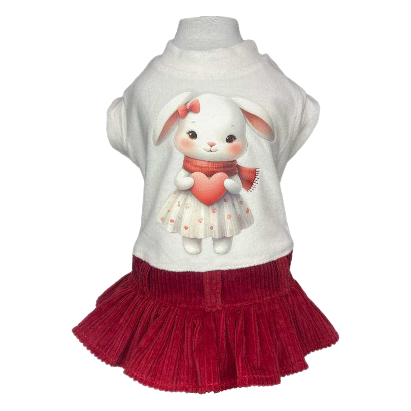 Delizioso abitino con dolce coniglietta e gonna in velluto rosso: un tocco tenero per passeggiate romantiche