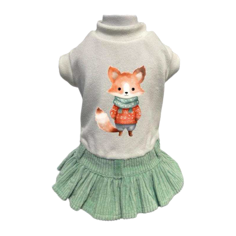 Un tenero look invernale con una volpina chic e una gonna in velluto a costine verde menta